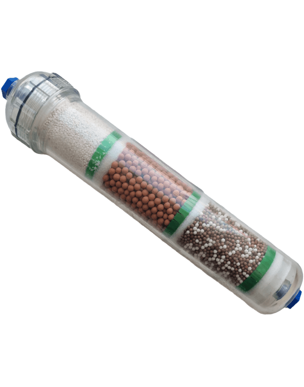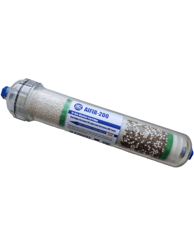 Auafilter AIFIR-200 In-line jonizuojančio vandens kasetė, kurią rekomenduojama naudoti atvirkštinio osmoso sistemose. AIFYR-200 mineralizuoja vandenį magniu, natriu, kaliu, selenu, kalciu ir kitų junginių mikroelementais. Sudėtyje yra biokeraminių terpių mišinio, kuris padidina pH (Padidina pH lygį 2 taškais, priklausomai nuo debito ir tiekiamo vandens parametrų) ir sumažina ORP iki -100 mV .