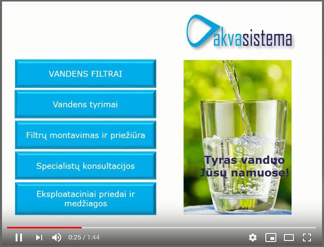 UAB "Akvasistema" specialistų kvalifikacija leidžia suderinti praktinį patyrimą su naujausiais technikos pasiekimais bei technologijomis. Didelį dėmesį skiriame produktų, paslaugų bei klientų aptarnavimo kokybei. Sprendimai bei produktai, rekomenduojami vandens kokybės gerinimui yra optimalūs, taupantys vartotojų laiką bei pinigus. Visos mūsų komandos tikslas ir dėmesys teikti aukščiausio lygio paslaugas mūsų klientams.