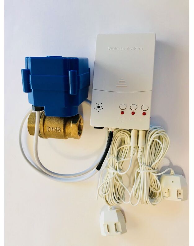 Vandens nuotėkio jutiklis ir kontroleris HS-2. Vandens nutekėjimas gali sukelti didelių ekonominių nuostolių. Siekiant išvengti žalos, reikia kontroliuoti vandens nutekėjimo galimybę. Šis jutiklis apsaugos Jūsų namą. Perspės apie vandens nuotėkį. Kur yra vandens vamzdynai, visuomet bus vandens nutekėjimo galimybė! Kai daviklis aptiks vandens pratekėjimą, įsijungs sirena ir bus uždarytas elektrinis ventilis. Elektrinis ventilis automatiškai užblokuos vandens padavimą po gauto signalo (reikia nuspausti RESET mygtuką, norint išjungti aliarmo signalą). Paprastai naudojama rūsiuose, SPA centruose. Galima prietaisą taip pat padėti šalia tualetų, rūsių, skalbimo mašinų, oro kondicionierių, šaldytuvų, indaplovių, kriauklių, akvariumų, nuotėkų siurblių, vandeninių šildytuvų, ir bet kur kitur, kur įmanomas vandens nuotėkis.