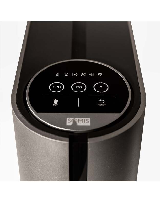 Vandens valymo sistemos SOMRO9 (su WIFI funkcija) paskirtis pagerinti vandens valymo sistemos eksploatacines savybes: Trys „paruošiamieji“ filtrai. Šių filtrų paskirtis apsaugoti atbulinio osmoso (RO) membraną, sulaiko visus teršalus, didesnius nei 1 mikronas (0001 mm). Norint užtikrinti kokybišką vandens sistemos darbą ir vandens valymą, „paruošiamuosius“ filtrus privalu keisti kartą per 3-6 mėn. · 800 GPD osmoso membrana. RO membrana yra vandens valymo sistemos „širdis“, filtruojanti vandenį molekulių lygiu iki 0,0001 µm. Pašalina bakterijas, virusus, nuodingus junginius ir radioaktyvias daleles. Būtent atbulinio osmoso membrana išvalo vandenį 96 –99 % nuo visų žinomų teršalų. Sistemos įrengimui reikalinga elektros instaliacija ir kanalizacija.