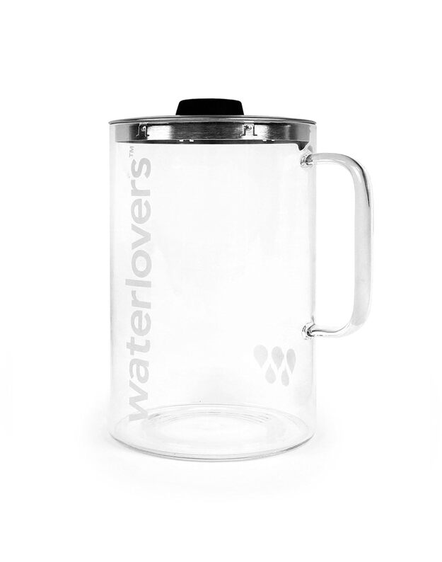 Stipraus borosilikatinio stiklo ąsotis su nerūdijančio plieno dangteliu ir silikoniniu dangteliu